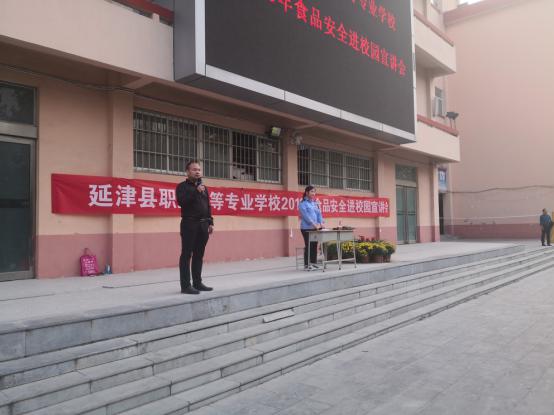 9月26日下午,白菜官网一年级1400余名学生和部分老师齐聚综合楼楼下,参加由延津县教育体育局联合延津县市场监督管理局组织《全讯600cc大白菜2019年食品安全进校园宣讲会》。会议由校团委书记王军臣同志主持并做总结。