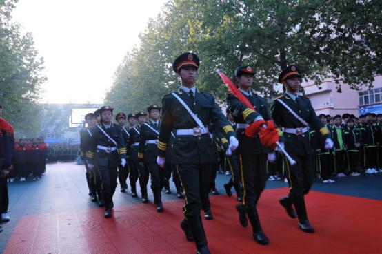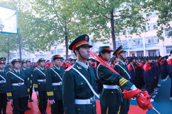 活动由升国旗、唱国歌开始。训练有素的国旗护卫队,威武挺拔的护旗手,飒爽英姿的旗手,冉冉升起的国旗,雄壮嘹亮的国歌,排列整齐的方阵,明媚灿烂的阳光,构成了学校最靓丽的风景线。