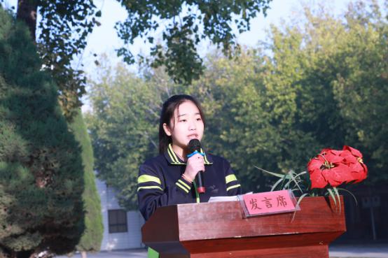 政教处副主任刘国胜要求同学们要有一颗同祖国人民共进退的中国心、一种敢于同命运抗争的精气神和一个不找任何借口的执行力,勇于挑起时代担当,以奋进开拓、拼搏奉献谱写人生华丽的篇章向祖国献礼。