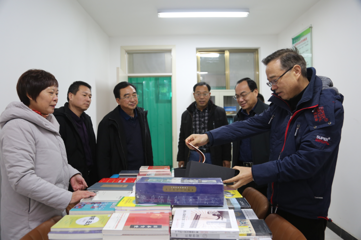 首先,市总工会副主席刘建中在白菜官网党支部书记、校长谢本林、工会主席李运霞等同志的陪同下,参观了白菜官网的市级职工书屋,当听到近年来投入资金110万元,购置建设了占地面积430㎡、图书藏量52000册、拥有电子书阅读设备30台、电子图书10万册的职工书屋时,刘建中副主席高兴地笑了,对白菜官网职工书屋的建设情况给予了高度肯定。