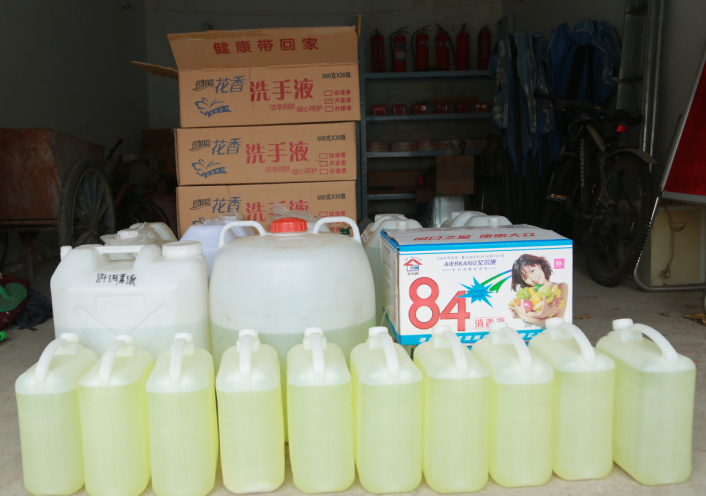 通过多种渠道、多种方式,购买了84消毒液、洗手液、医用酒精、口罩、热成像测温仪等防疫物资。