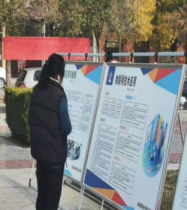 为了宣传职业教育,学校多措并举:一是更新了文化墙内容;二是在醒目位置进行职业教育政策宣传;三是在星光大道悬挂条幅营造氛围;四是各专业制作宣传版面介绍专业基本情况。