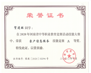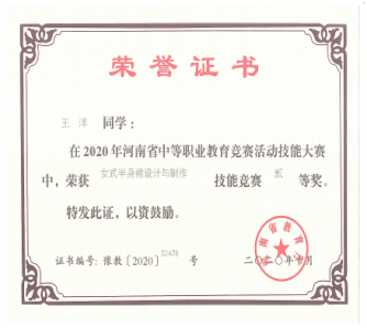 2020年10月参加河南省系列大赛部分获奖证书(二)