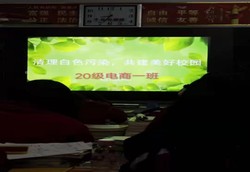 为培养学生保护环境的良好习惯,积极践行习总书记提出的“绿水青山,就是金山银山”发展理念,2020年11月15号,延津职专109个班级同时举行了“治理白色污染,共建美好校园”为主题的班会活动。