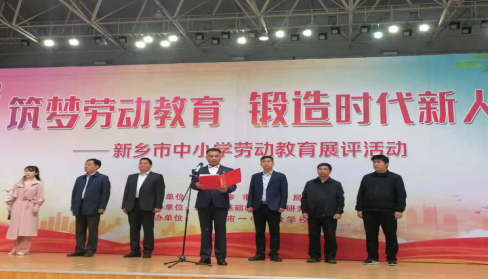 新乡市教育局副局长冯建在展评活动开幕式上致辞