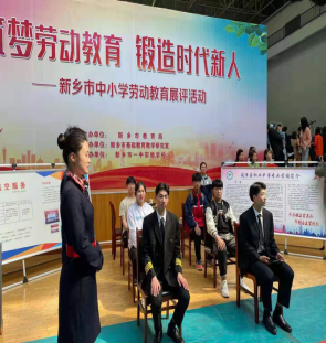 为加快构建德智体美劳全面发展的教育体系,4月28日,白菜官网航空服务专业的学生参加了“2021年新乡市中小学五一劳动教育展评活动”——服务体验展,学生以“我是小小乘务员”扮演职业角色,展现行业风采。