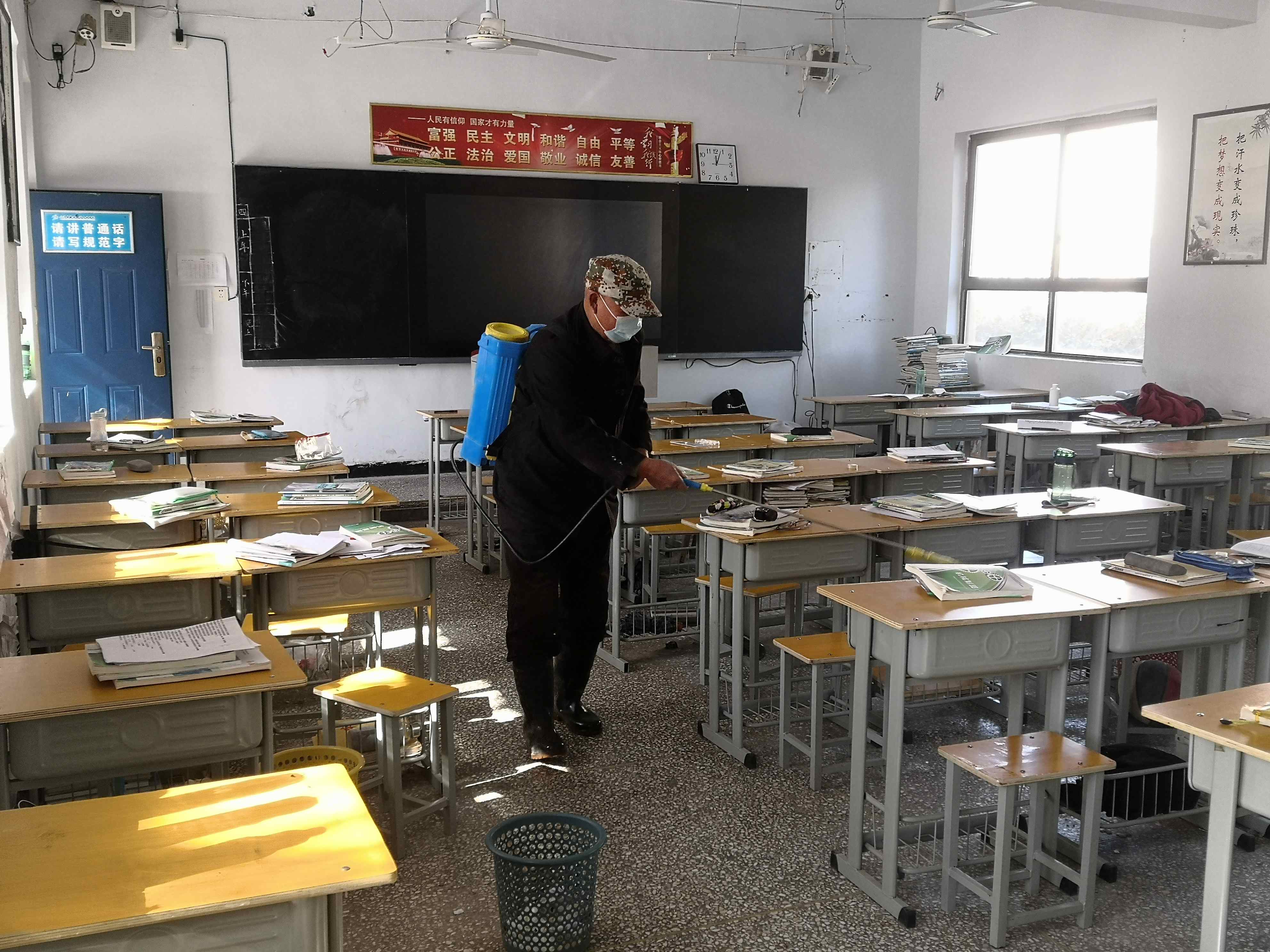 六是餐厅、寝室、厕所、教室等地方固定时间消杀。