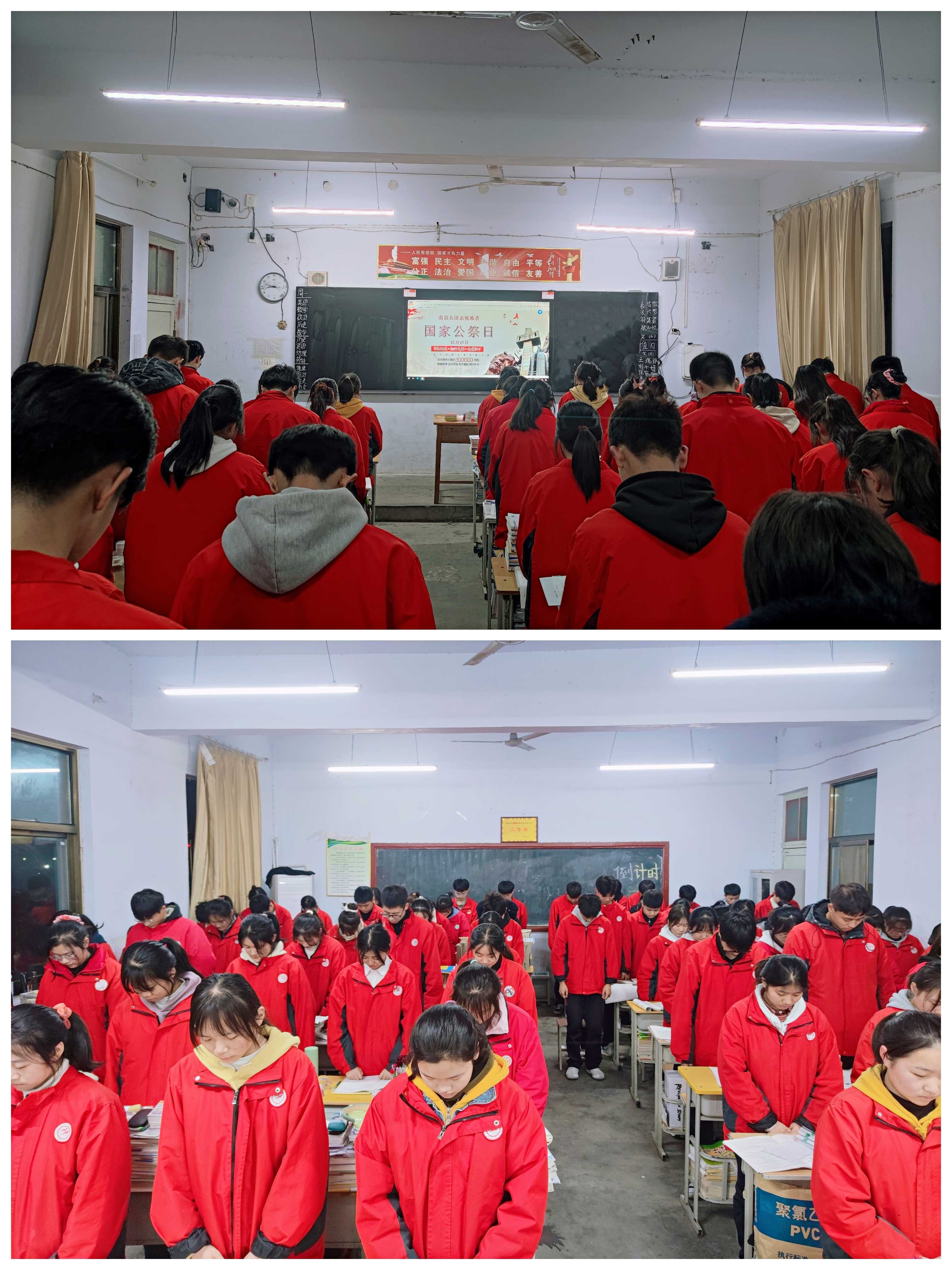 班会课上,班主任从震惊世界的“南京大屠杀”的历史知识讲起,当同学们看到充满了文化底蕴与生命活力的南京城被入侵的日军摧毁,全城血流成河,尸横遍野时,无不动容哀叹。一张张褪色的黑白照片激起了同学们无限的愤懑之情,师生们共同为祖国曾经受到的凌虐而悲痛。各班学生代表也纷纷抒发自己的爱国情怀,并立志“勿忘国耻,圆梦中华”。班会开展过程中,各班还学习了爱国抗日文章、歌曲,观看爱国影片。现场学习气氛浓厚。最后,全体同学向南京大屠杀死难者同胞默哀致敬。