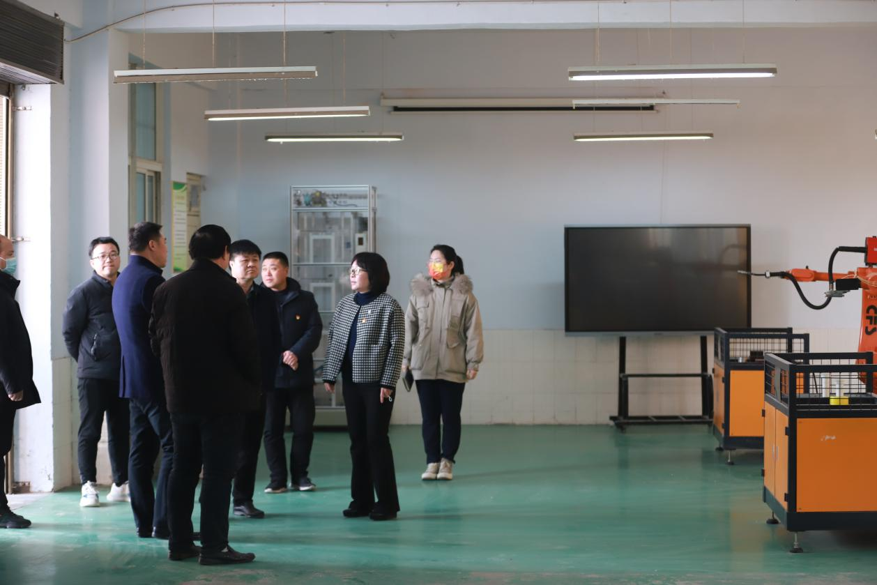 首先,刘鹏鹏书记代表学校向韩部长汇报了学校的基本情况、师资队伍、在校生规模、校企合作、专业建设、实习就业、面临的困难和今后的打算;接着,调研组一行参观了机电技术应用专业实训基地、工业机器人技术应用专业实训室、服装设计与工艺专业实训基地和汽车运用与维修专业实训基地,韩部长边走边询问学校师资建设、专业建设、校企合作等情况,问得很深入、很专业,刘书记一一作了解答,特别是听到学生穿的校服都是服装设计与工艺专业的学生自己设计、自己制作的,韩部长给与了充分肯定;最后,韩部长提出三点要求:一是安全重于泰山。学校教育教学、各种设施、各种活动、实习实训、师生食宿等各项工作的开展都要高度重视安全,特别是学校规模大,生源广,这个年龄段的学生叛逆心比较强,世界观、价值观、人生观处于形成的关键期,一定要通过多种形式、多种途径对学生进行思政教育、责任教育、法制教育、安全教育;二是专业建设显特色。要根据学校实际情况、市场需求办好多个专业,但是一定要突出重点专业、特色专业、示范专业,特别是要立足于区域经济社会发展办好专业,为经济社会发展提供技能人才支撑和智力支持;三是疫情防控是关键。目前,国际国内新冠肺炎疫情形势仍然复杂严峻,聚集性疫情和散发病例在多地连续发生。开学前后,师生大规模流动,疫情防控压力很大。一定要筑牢校园疫情防线,确保平安开学、开学平安,要根据省市县开学准备要求,精准摸排出新返新师生信息,日报告、零报告,要进一步加强疫苗接种和核酸检测,确保顺利安全开学,开学后要加强疫情防控常态化管理,为教育教学正常运行铺好路、奠好基。