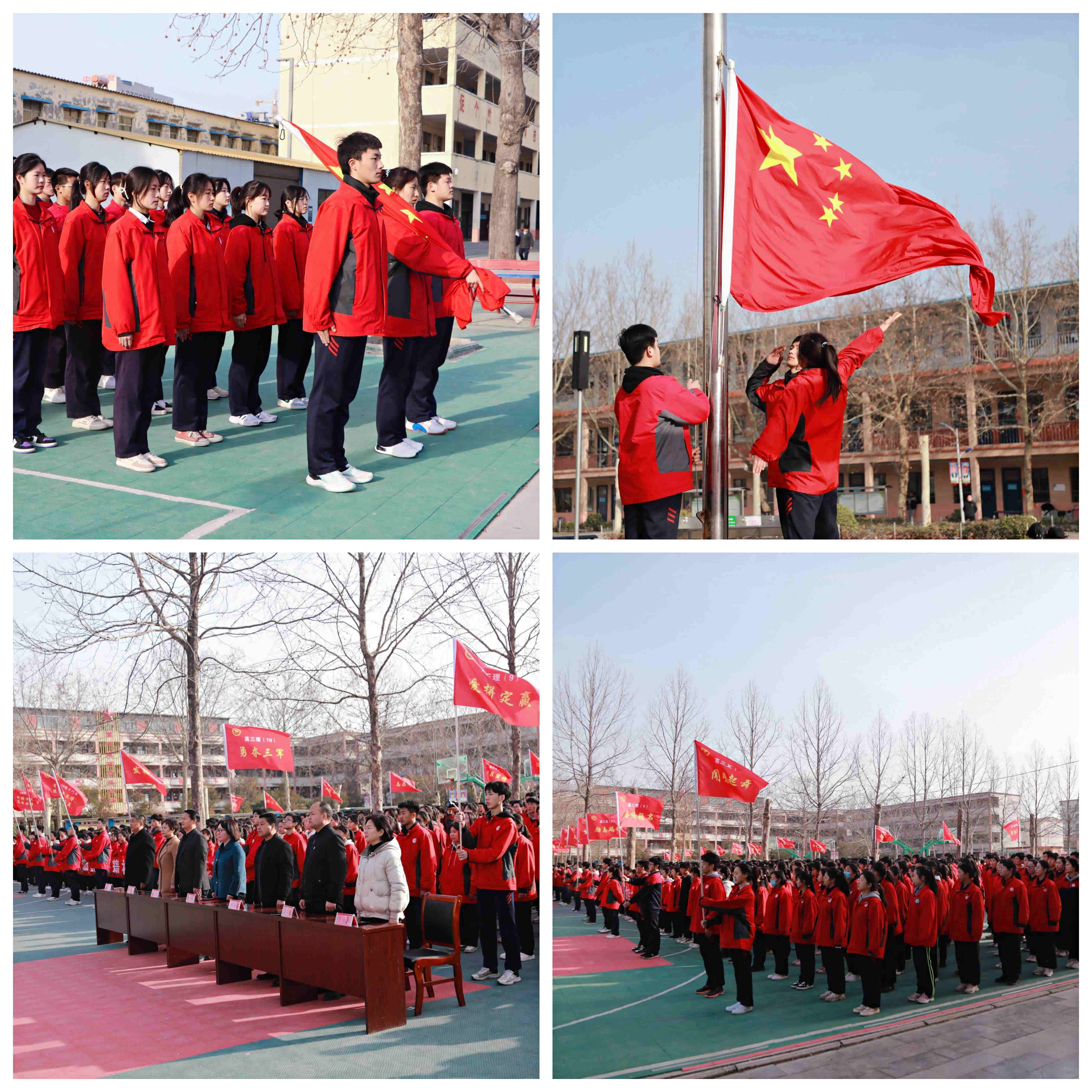春光正好,春阳暖心。上午9点钟,高考百日誓师大会正式开始。第一项升国旗,高三国旗护卫队迈着铿锵有力的步伐护送国旗,鲜艳的五星红旗伴随着国歌冉冉升起,全体肃立。大会场面壮观,气氛庄严。