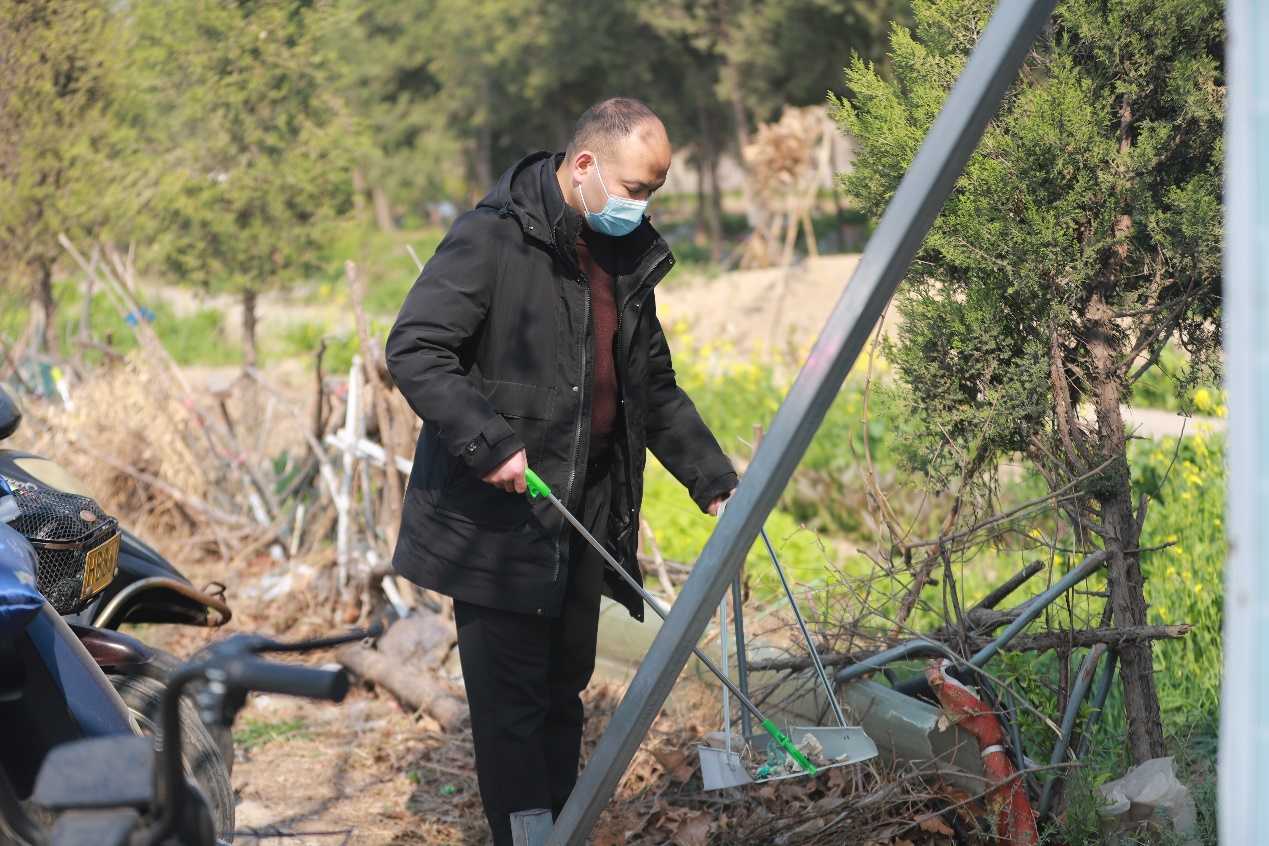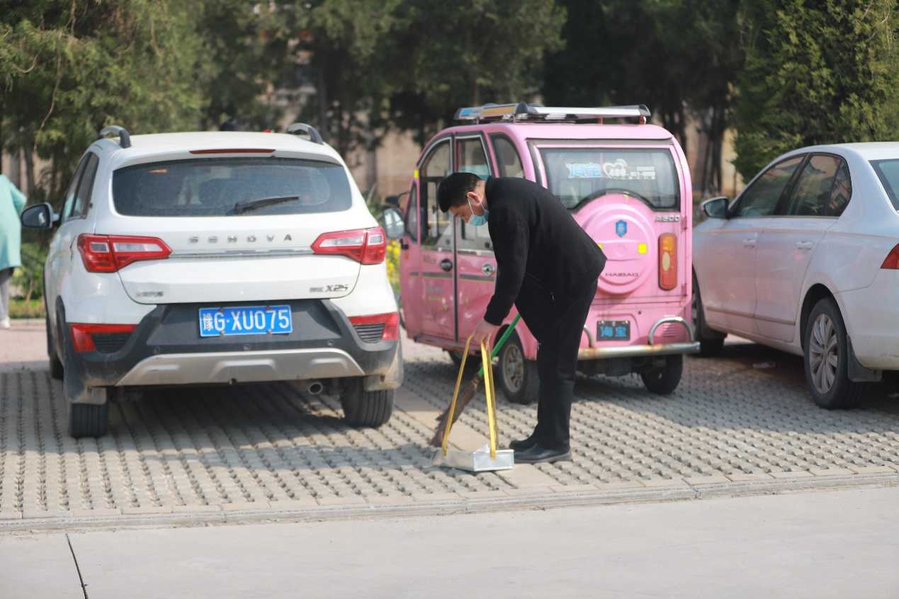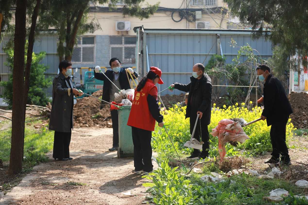 大家拿着扫帚、铁铲、钳子分工协作,或打扫路面,或清理杂草树叶、白色垃圾,……他们不怕脏、不怕累,汗水浸透了他们的衣襟,不论是学校操场还是教学楼前大路,又或者是校南门外周边,整个现场处处都是忙碌的身影。