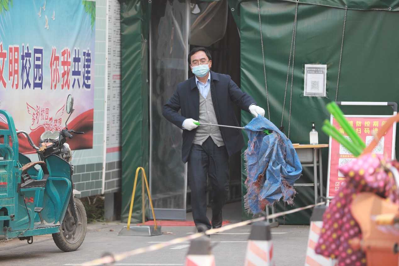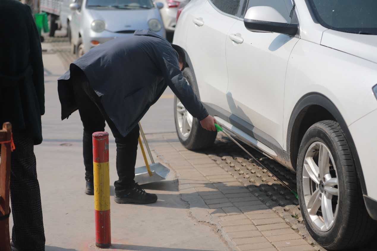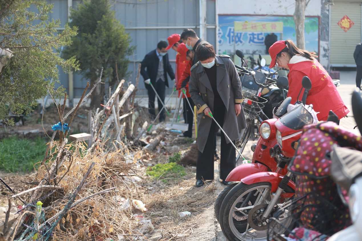大家拿着扫帚、铁铲、钳子分工协作,或打扫路面,或清理杂草树叶、白色垃圾,……他们不怕脏、不怕累,汗水浸透了他们的衣襟,不论是学校操场还是教学楼前大路,又或者是校南门外周边,整个现场处处都是忙碌的身影。