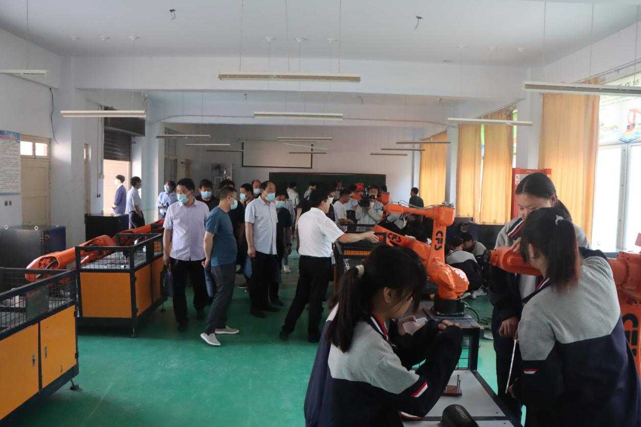 与会嘉宾参观延津县职业中专工业机器人实训基地
