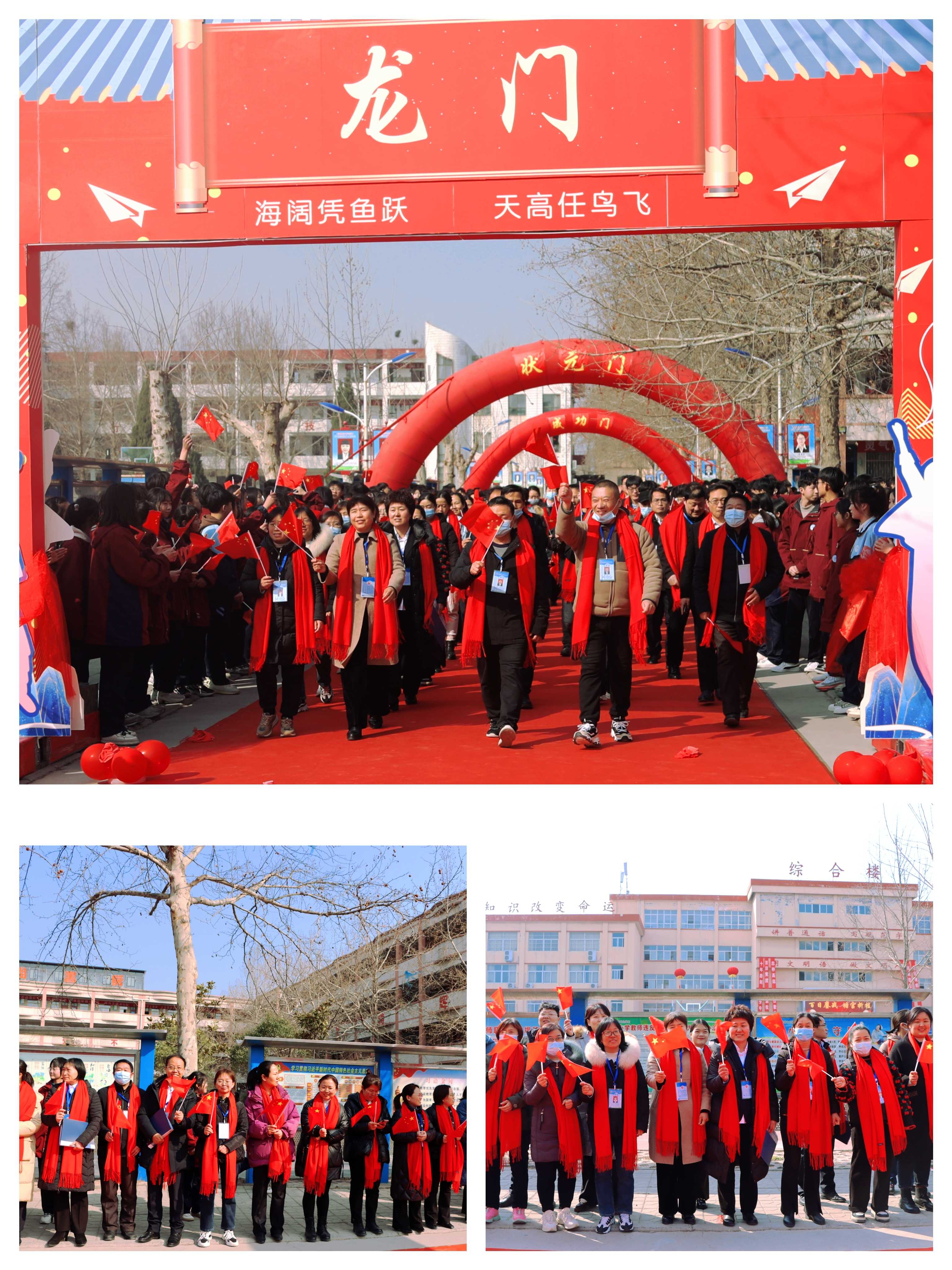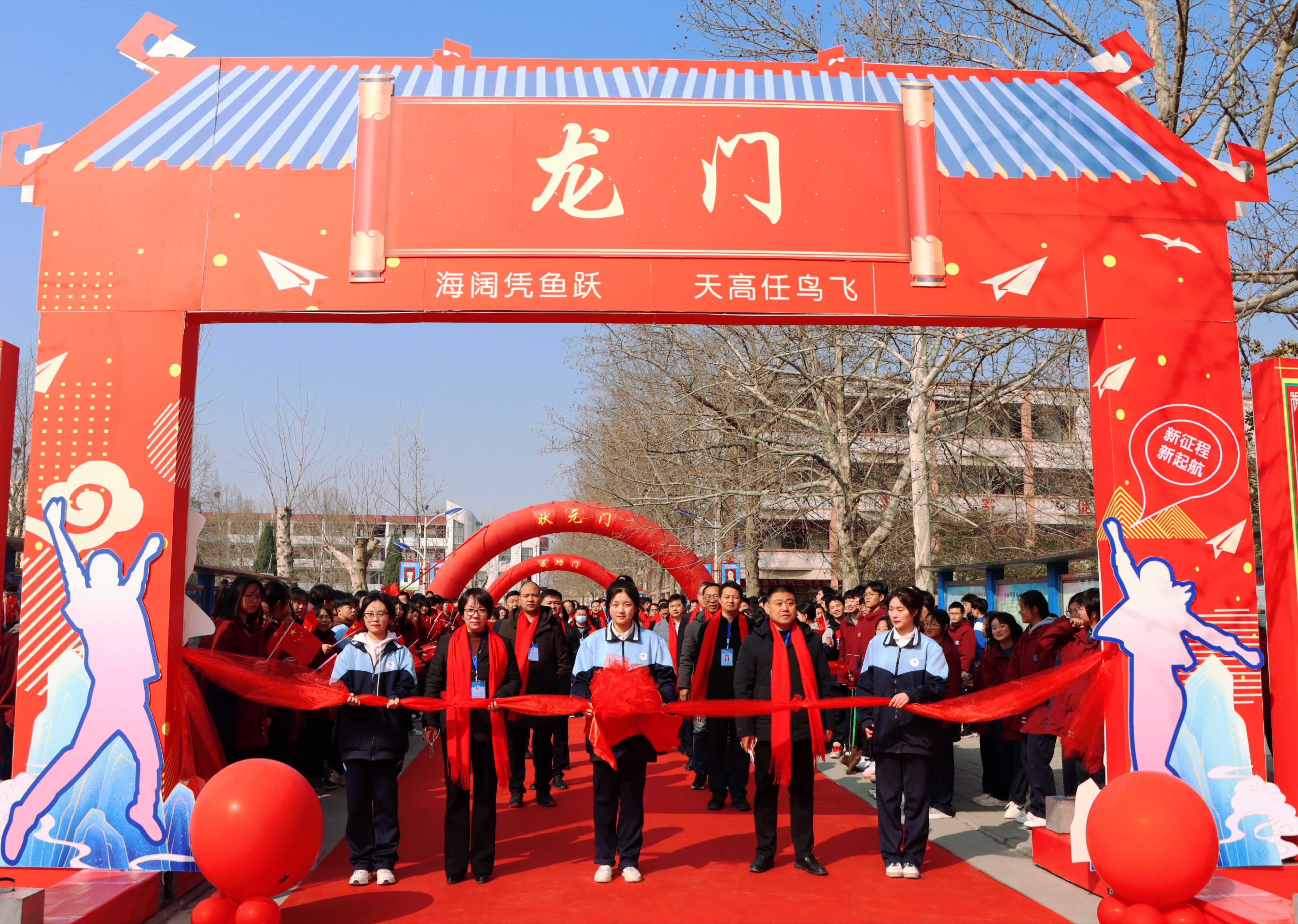 古时状元郎要跃三门,一跃成功门青云直上,二跃状元门前程似锦,三跃龙门鹏程万里!在校领导和老师的引领下,高三学子依次跨越成功门、状元门和龙门,将活动推向了第一个高潮。