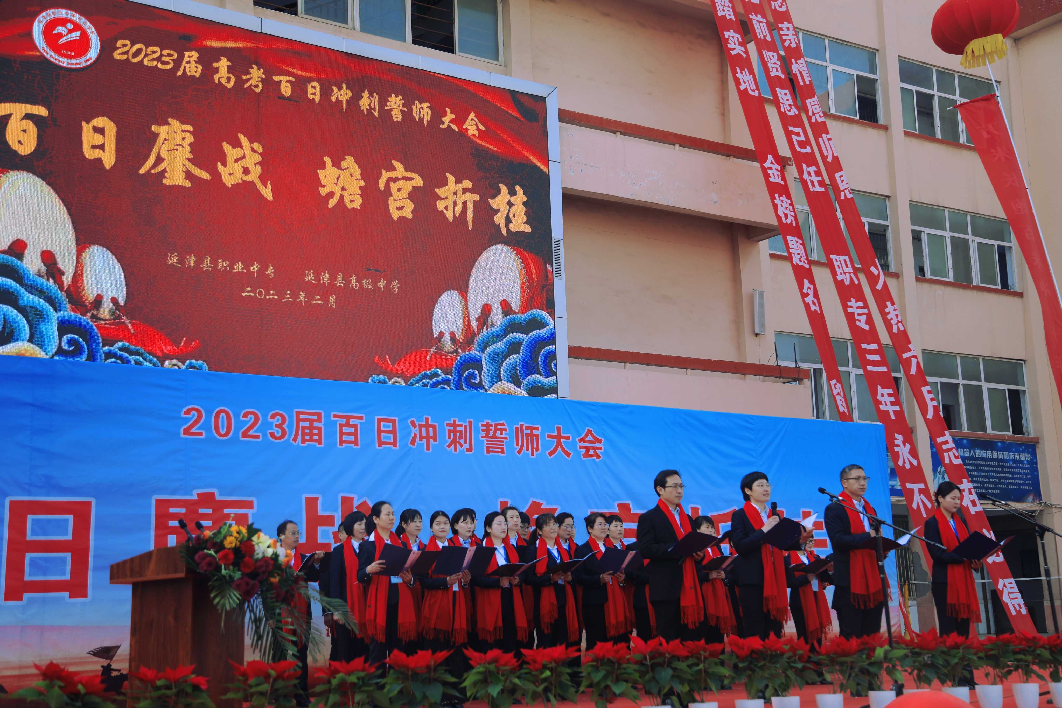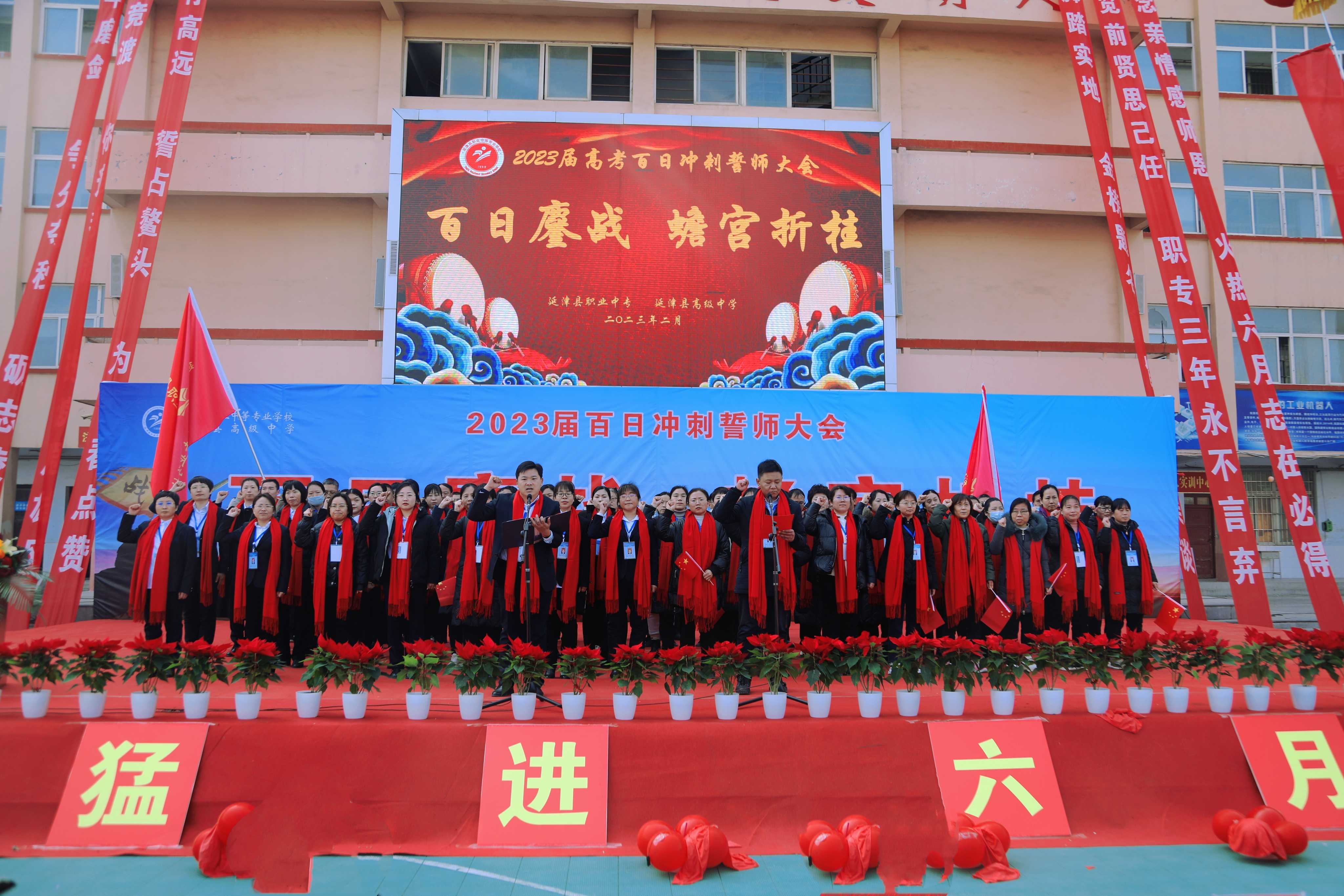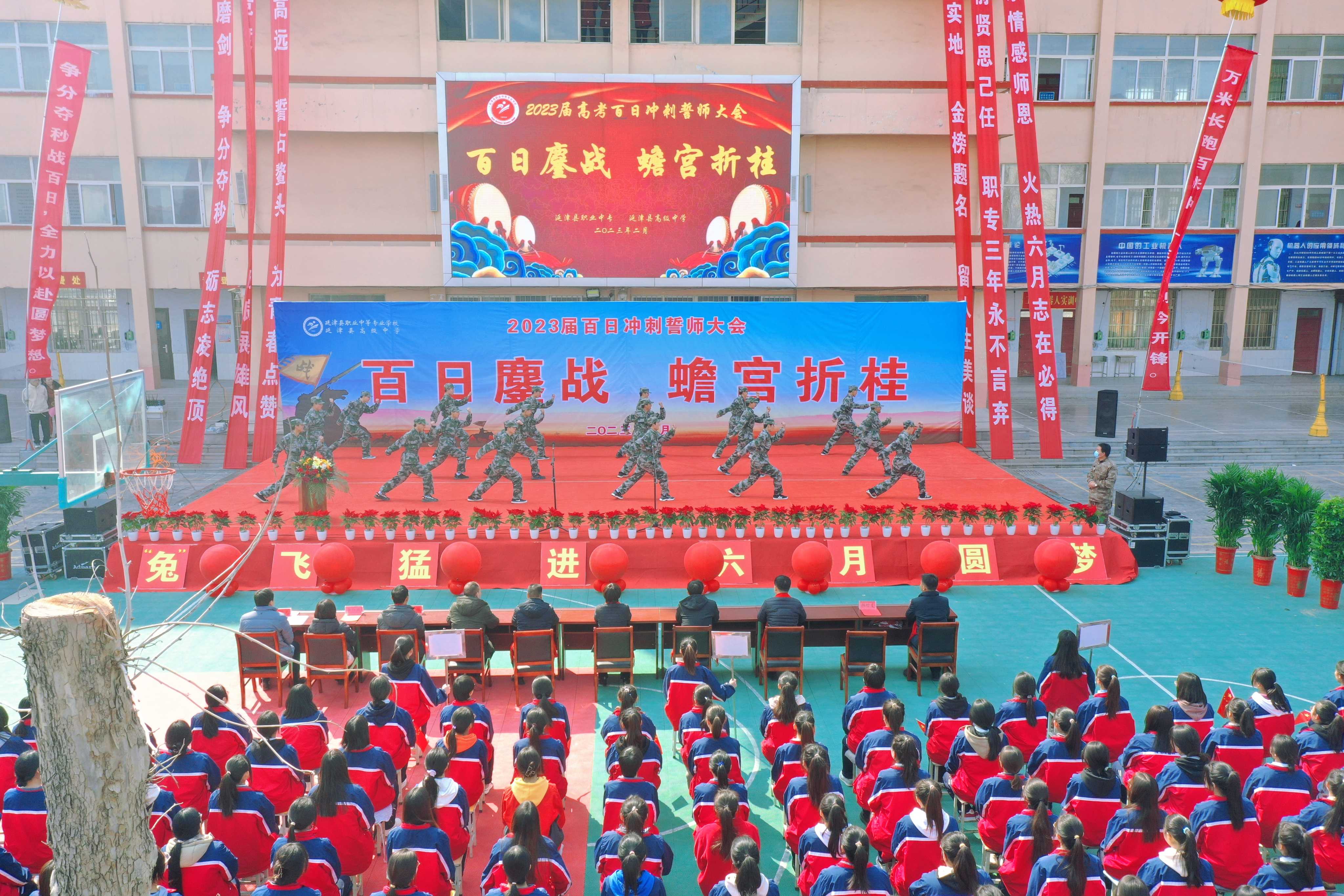 十年磨剑,争分夺秒,砺志凌绝顶;百日竞渡,你追我赶,破浪展雄风。2月27日,是一个阳光灿烂的日子,又是高考百日倒计时节点,为更好提振高三师生士气,激发决战高考的昂扬斗志,县职业中专、县高级中学“百日鏖战 蟾宫折桂”2023届高考百日冲刺誓师大会在学校操场举行。
